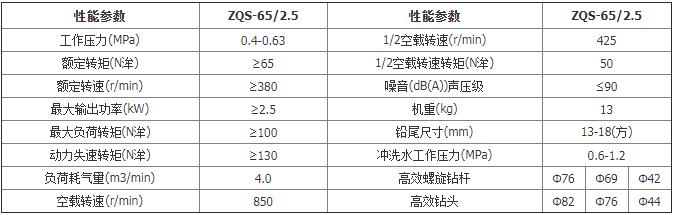 2、ZQS-65/2.5手持式氣動鉆機技術參數